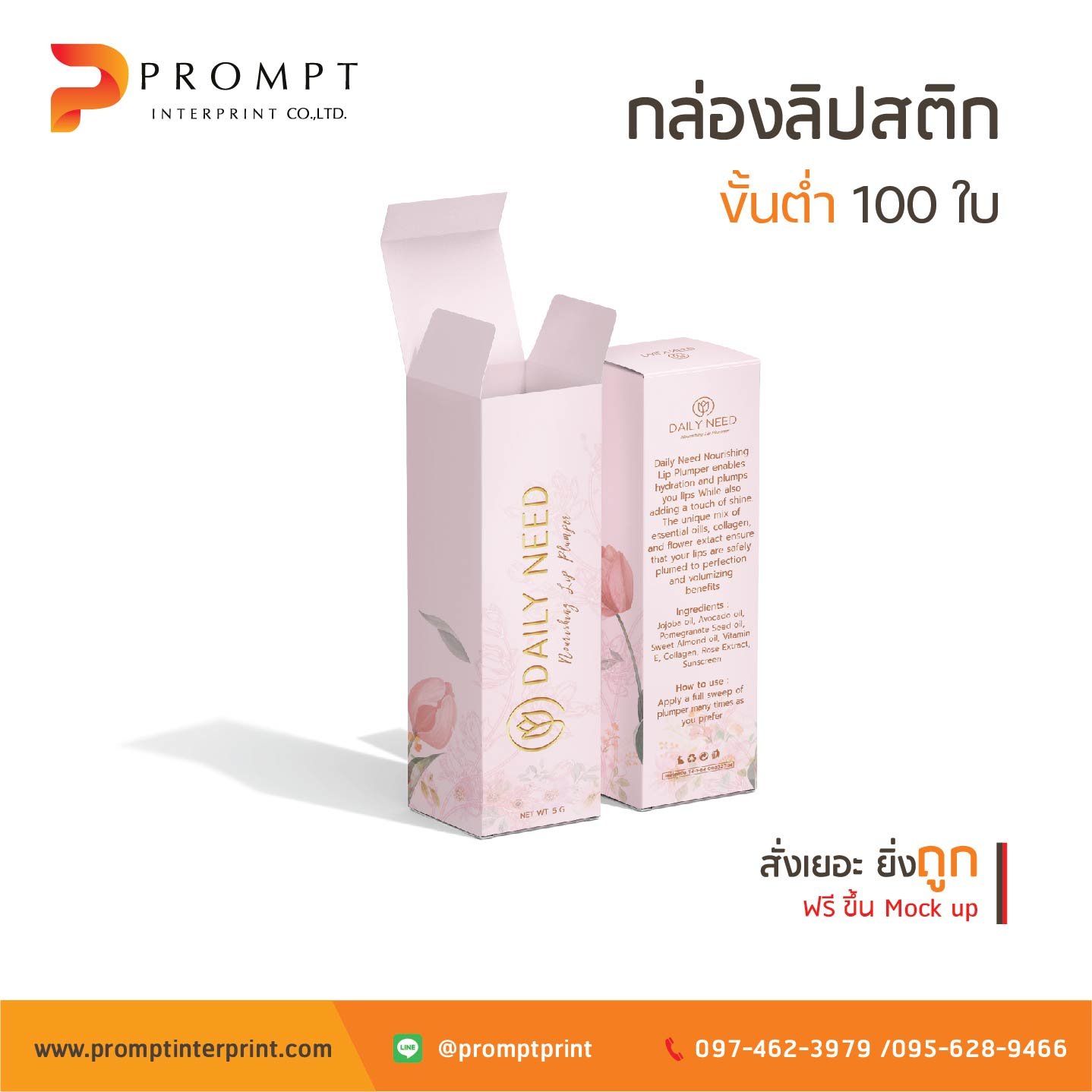 เป็นเจ้าของแบรนด์ง่ายๆ เพียงสั่งผลิตกล่องที่ Prompt Interprint เริ่มต้นแค่ 100 ใบ >>ผลิตด่วนภายใน 3-5 วัน<<