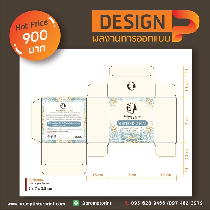 รับทำกล่องสบู่ กล่องครีม กล่องลิปสติก กล่องอาหารเสริม สื่อสิ่งพิมพ์ และแพคเกจจิ้งทุกชนิด งานพิมพ์สวย พร้อมออกแบบในราคา พิเศษเพียง 900 บาทเท่านั้น จากราคาปกติ 2,500 บาท ดีไซน์โดดเด่น เพิ่มมูลค่าให้กับแบรนด์สินค้า ด้วยเครื่องพิมพ์ที่ทันสมัย พิมพ์ด้วยระบบ Offset และ Digital Offset ในราคาถูก งานเสร็จไวส่งตรงเวลาทันใช้งานสามารถเช็คราคาได้ตลอด 24 ชั่วโมง สนใจสินค้า กดสั่งสินค้าได้ง่ายๆ เพียง คลิ๊ก!! Add Line : @promptprint